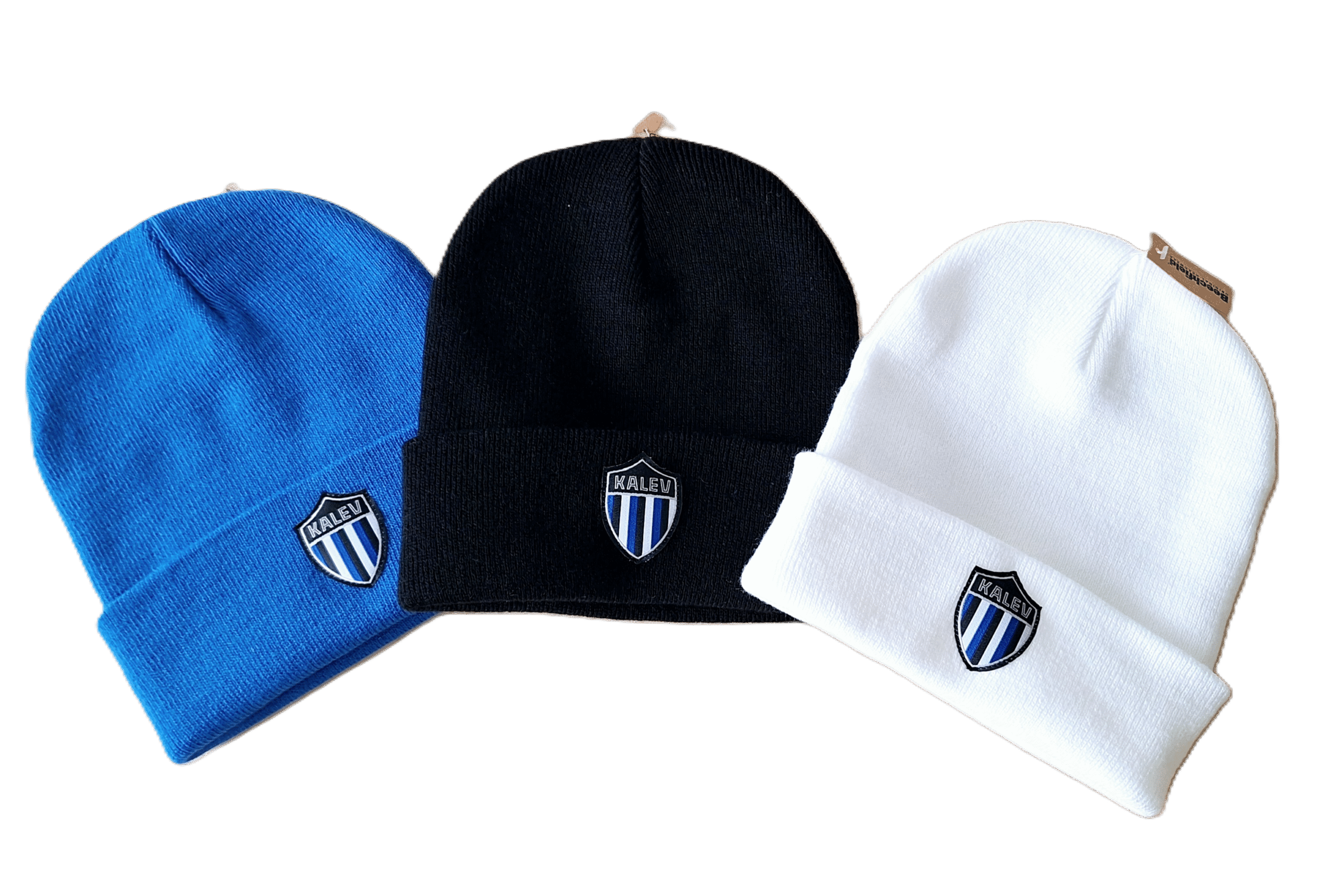Trendikas Beanie müts Kalevi logoga – laos olemas ilusates Eesti lipu värvides – sinine, must ja valge! Kui valik on raske, osta või kõik! Mudel unisex. Materjal 100% polüakrüül. Suurus one size.