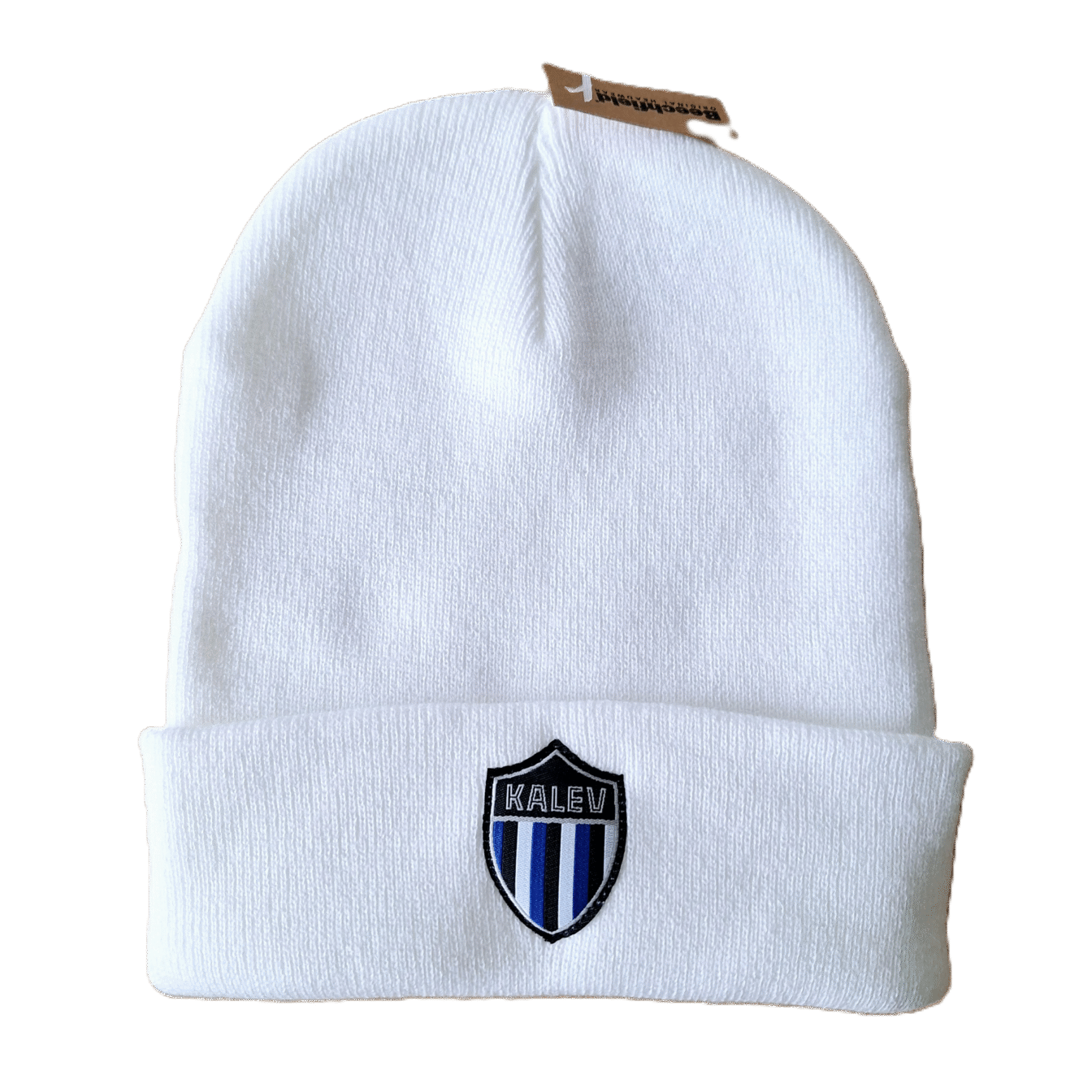 Trendikas Beanie müts Kalevi logoga. Saadaval must, valge ja erksinine. Mudel unisex. Materjal 100% polüakrüül. Suurus one size.